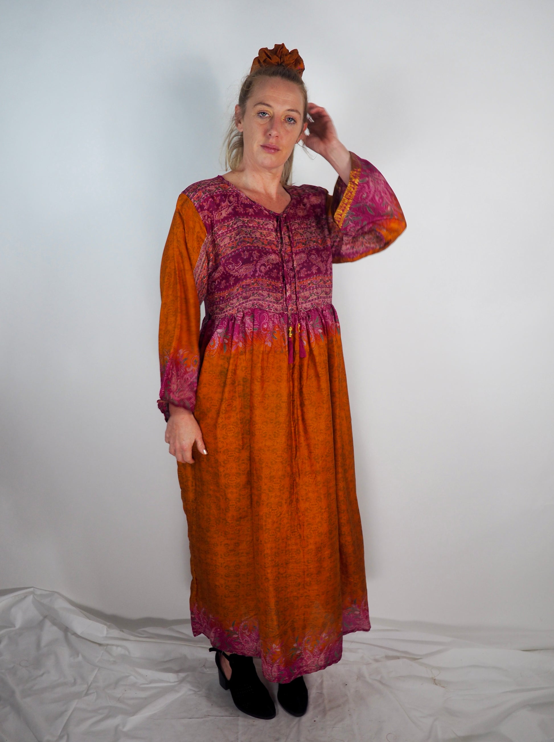 The Vadella Dress – Up-cycled Vintage Sari Maxi Dress